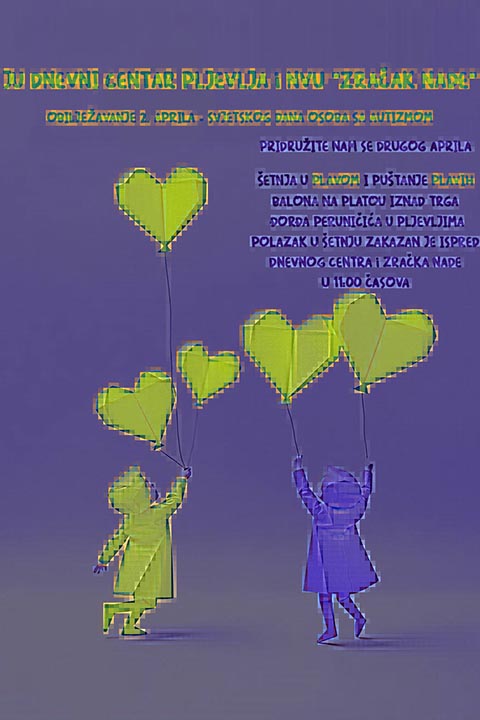- Tradicionalnom šetnjom u plavom i puštanjem balona na Trgu 13. Jul u Pljevljima obilježili smo Svjetski dan osoba sa autizmom. Hvala svim prijateljima koji su nam se pridružili u pomenutoj aktivnosti: Vrtić “Eko Bajka”, OŠ “Salko Aljković”, OŠ “Ristan Pavlović”, OŠ “Boško Buha”, OŠ “Mihailo Žugić”, SSŠ, Gimnazija “Tanasije Pejatović”, Škola za osnovno muzičko obrazovanje Pljevlja, Dom starih Pljevlja, Zavičajni muzej Pljevlja, Narodna biblioteka “Stevan Samardžić”, Galerija “Vitomir Srbljanović”, Centar za kulturu, Zavod za zapošljavanje Pljevlja, Centar za socijalni rad, Goran Milinković ispred osoba izuzetno niskog rasta, članovi i predsjednik Upravnog odbora JU “Dnevni centar” Pljevlja, Sekretarijat za kulturu, socijalna i druga pitanja, Služba menadžera opštine, Plesni klub “Sonrisa” i predsjednica Skupštine opštine Pljevlja Jovana Tošić sa saradnicima. Posebnu zahvalnost dugujemo djeci i zaposlenima iz Dnevnog centra “Lipa” iz Plava koji su nam se pridružili u obilježavanju ovog značajnog datuma.Nakon šetnje u plavom i puštanja plavih balona prisutni su se zabavili uz koreografije plesnog kluba “Sonrisa”.Neka ovaj dan bude podsjetnik za sve nas da zajedno gradimo neko bolje i pravednije društvo za svu našu djecu