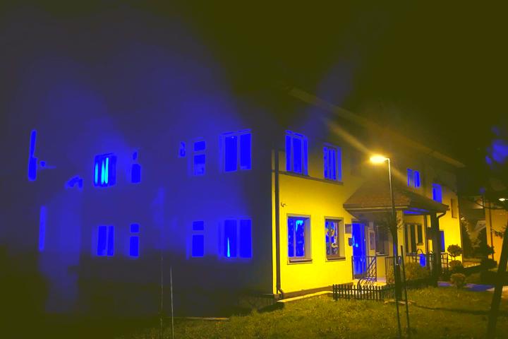 - Zgrada JU Dnevni centar Pljevlja i NVU "Zračak Nade" svijetli plavo u znak podrške djeci i osobama sa autizmom. Veliko hvala Mirsadi Ćaćić iz hotela Franca Pljevlja i Veselinu Dragašu koji su nam obezbjedili osvjetljenje i na taj način dali svoj doprinos u obilježavanju 2.aprila - Svjetskog dana osoba sa autizmom