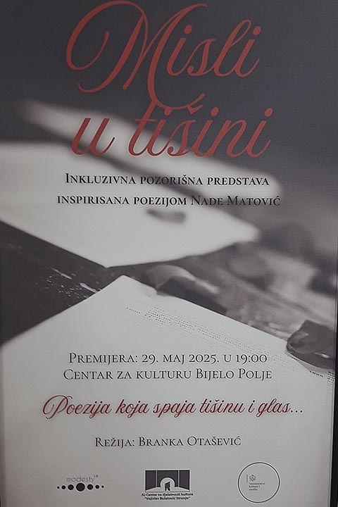 29.5.2025. godine - Zaposleni iz JU Dnevni centar Pljevlja prisustvovali su premijeri inkluzivne pozorišne predstave „Misli u tišini“, koja se održala u četvrtak, 29. maja 2025. godine u 19 časova, u Velikoj sali Centra za kulturu „Vojislav Bulatović Strunjo“ u Bijelom Polju.